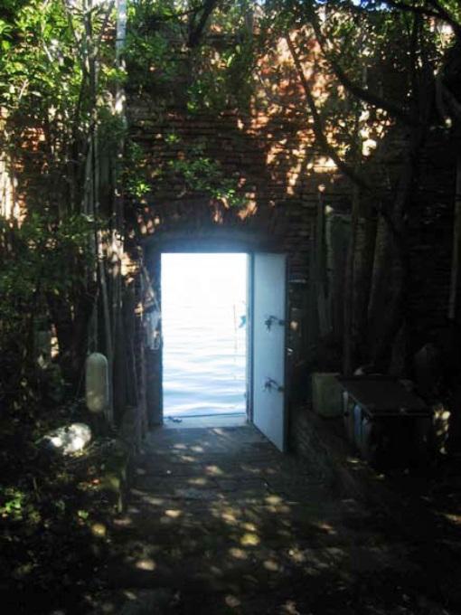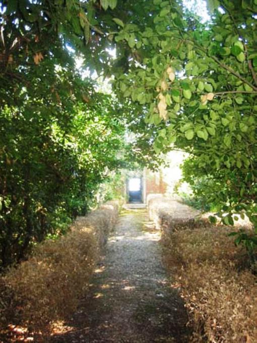 Un vialetto parte Sud-Ovest, lasciando l’ingresso, porta alla casa grande: oltre 400 mq: contiene 8 ampie stanze rettangolari e due triangolari ed un camminamento a volta a botte ribassato, largo ed alto circa 2 metri e lungo più di 10 metri. Profondi incavi portano alle finestre sulla laguna.