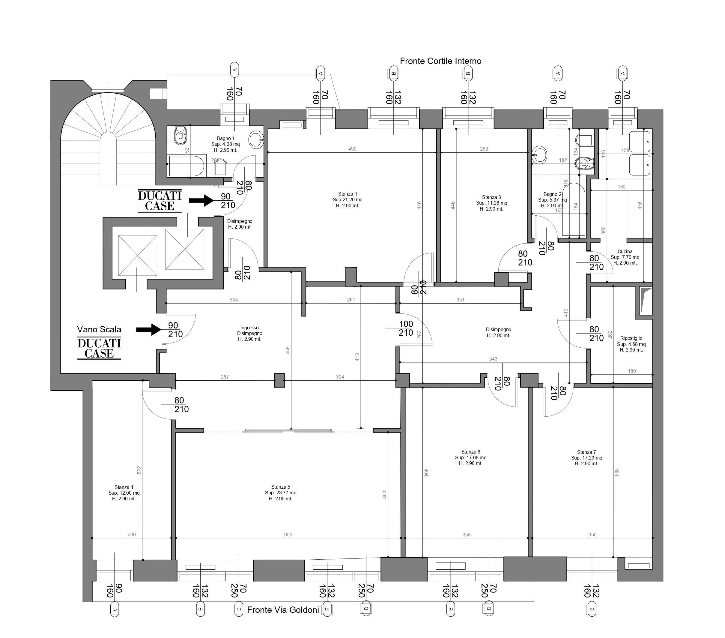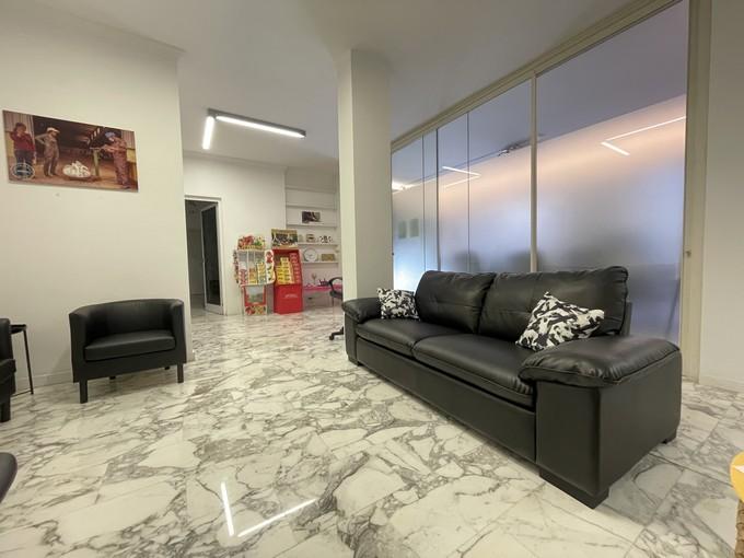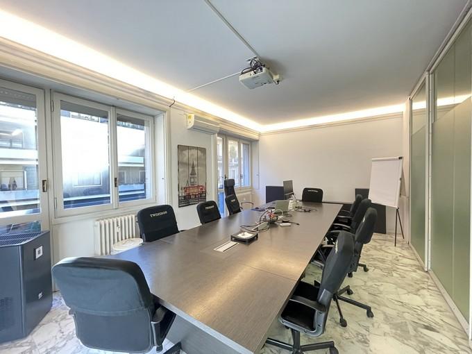 Composto da: doppio ingresso, reception, sei locali, sala riunioni eventualmente divisibile affacciata sul balcone, locale coffee break, due bagni, ripostiglio.