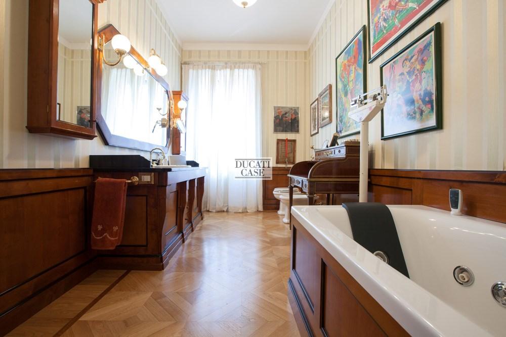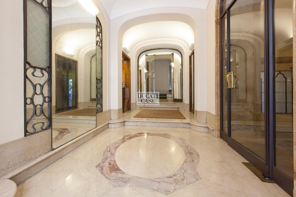 Esposizione doppia, tranquillo e luminoso, piacevolmente affacciato su via Sant’Andrea e il cortile interno, perfetto, pavimenti in parquet intarsiato, pareti dei bagni in boiserie di legno, armadi e attrezzature nelle cabine armadio su misura, cantina, serramenti di ultima generazione, impianto di aria condizionata, domotica, antifurto, in elegante stabile d'epoca del 1900 con portineria e ascensore.