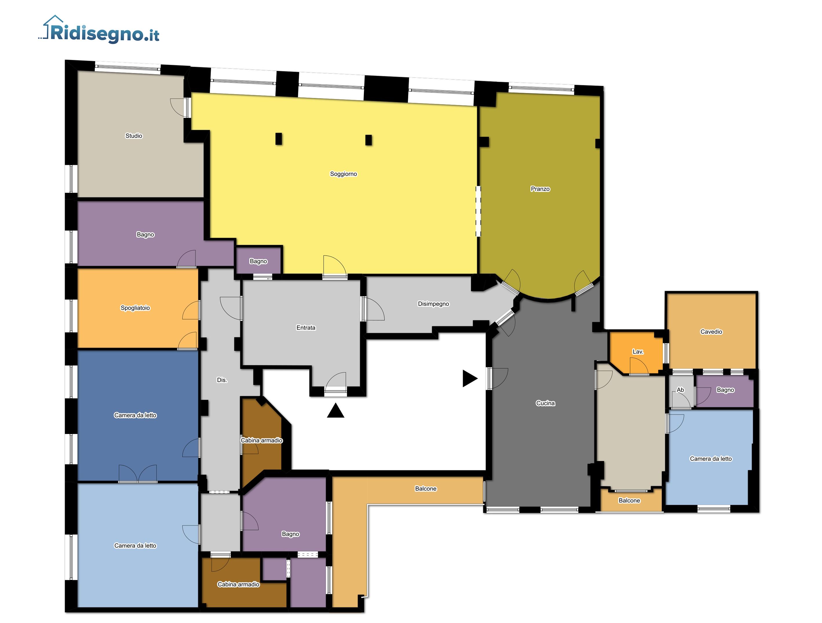 ampio ingresso che divide l’appartamento in tre zone:
