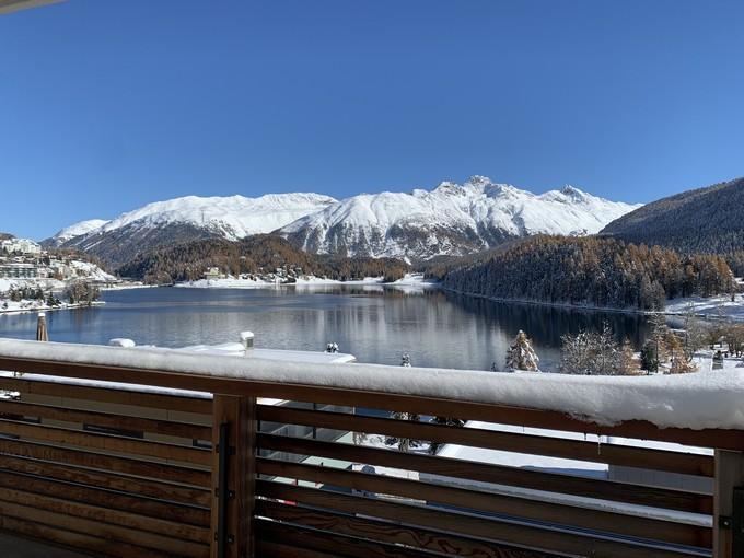 Nella regina delle Alpi, St. Moritz, splendido appartamento con vista lago a due passi dal centro con grande balcone soleggiatissimo ad angolo.