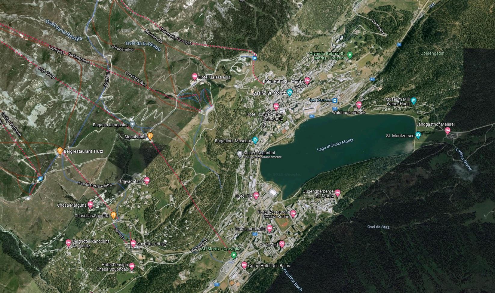St. Moritz è comodamente raggiungibile in macchina tramite i tre passi Maloja, Bernina e Julier, tramite l'aeroporto internazionale di Samedan, inoltre è ben collegato a tutti i paesi della valle tramite la ferrovia e i numerosi autobus.