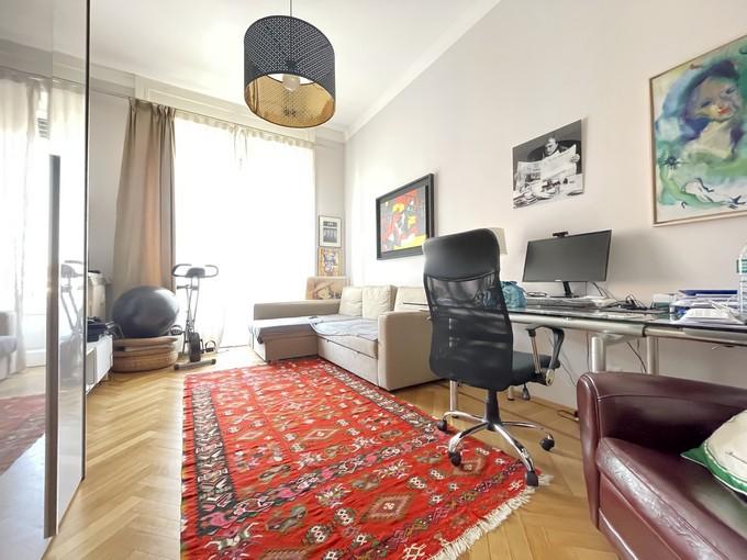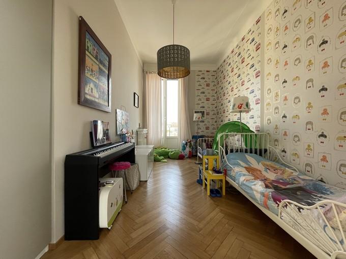 Composto da: ingresso, luminoso soggiorno doppio con balcone ad angolo, studio, cucina abitabile con balcone, tre camere di cui una con balcone, due bagni, cabina armadio, ripostiglio.