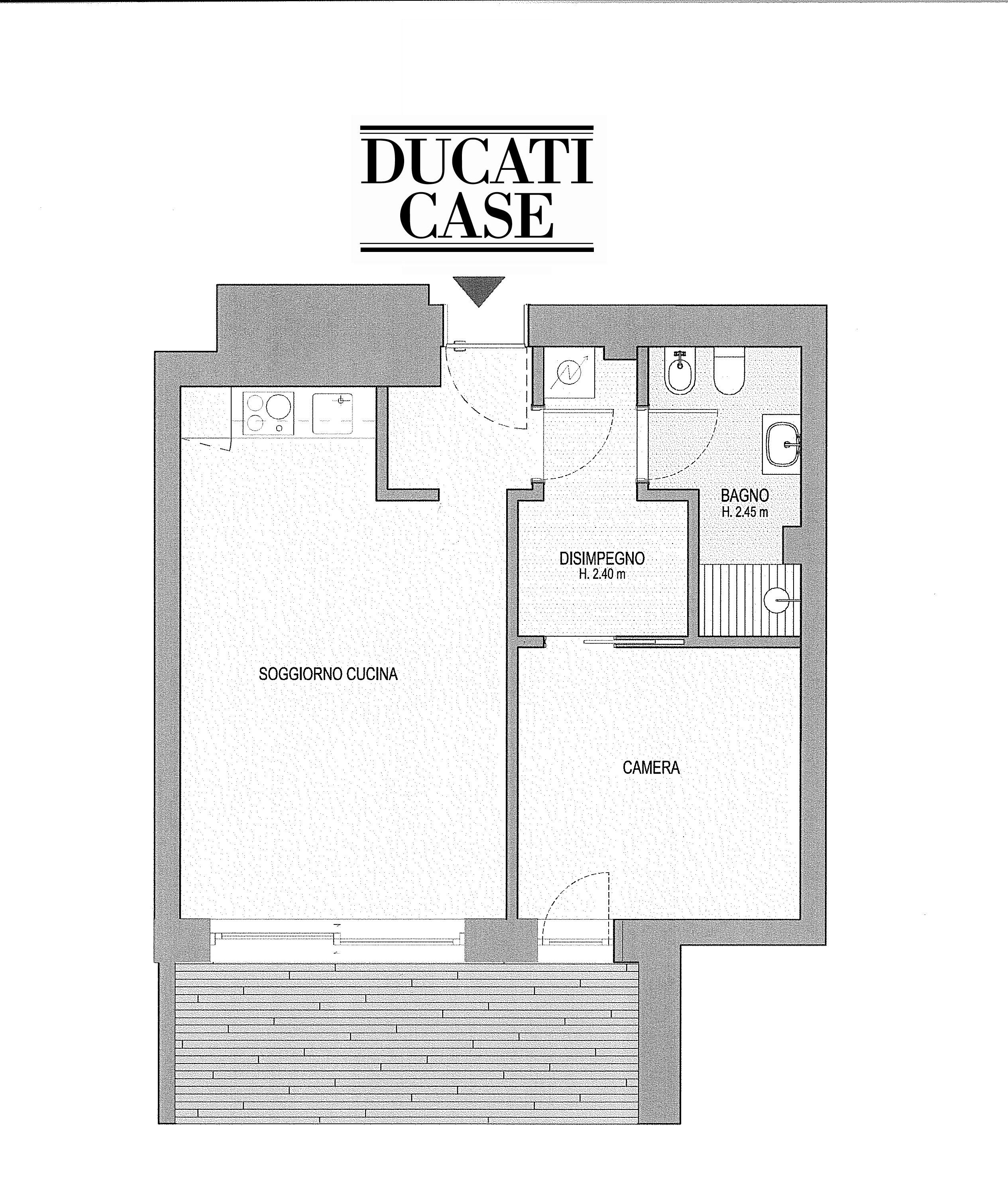 Composto da: ingresso, soggiorno con cucina a vista e ampio balcone abitabile, disimpegno con angolo lavanderia, camera con accesso al terrazzo e bagno.
