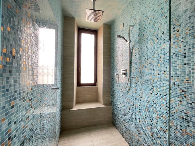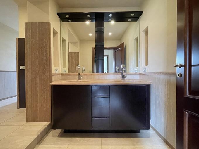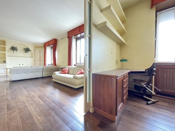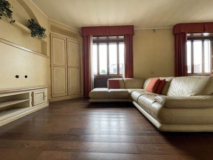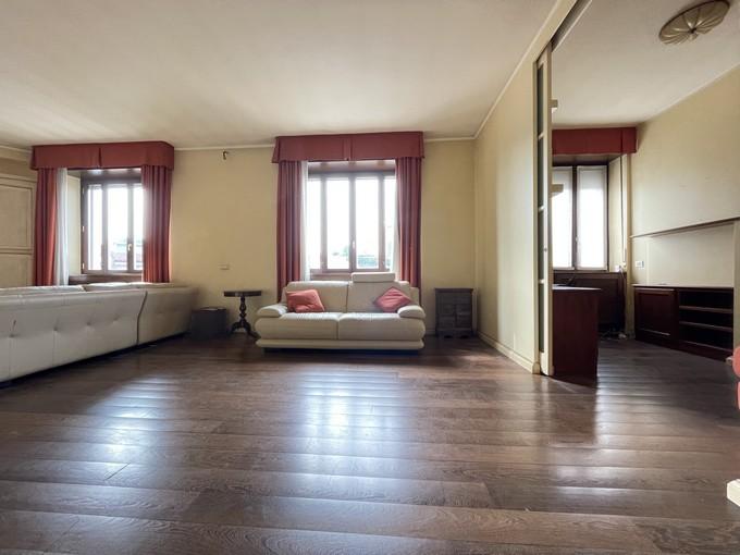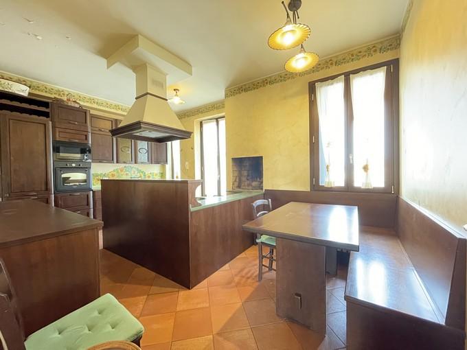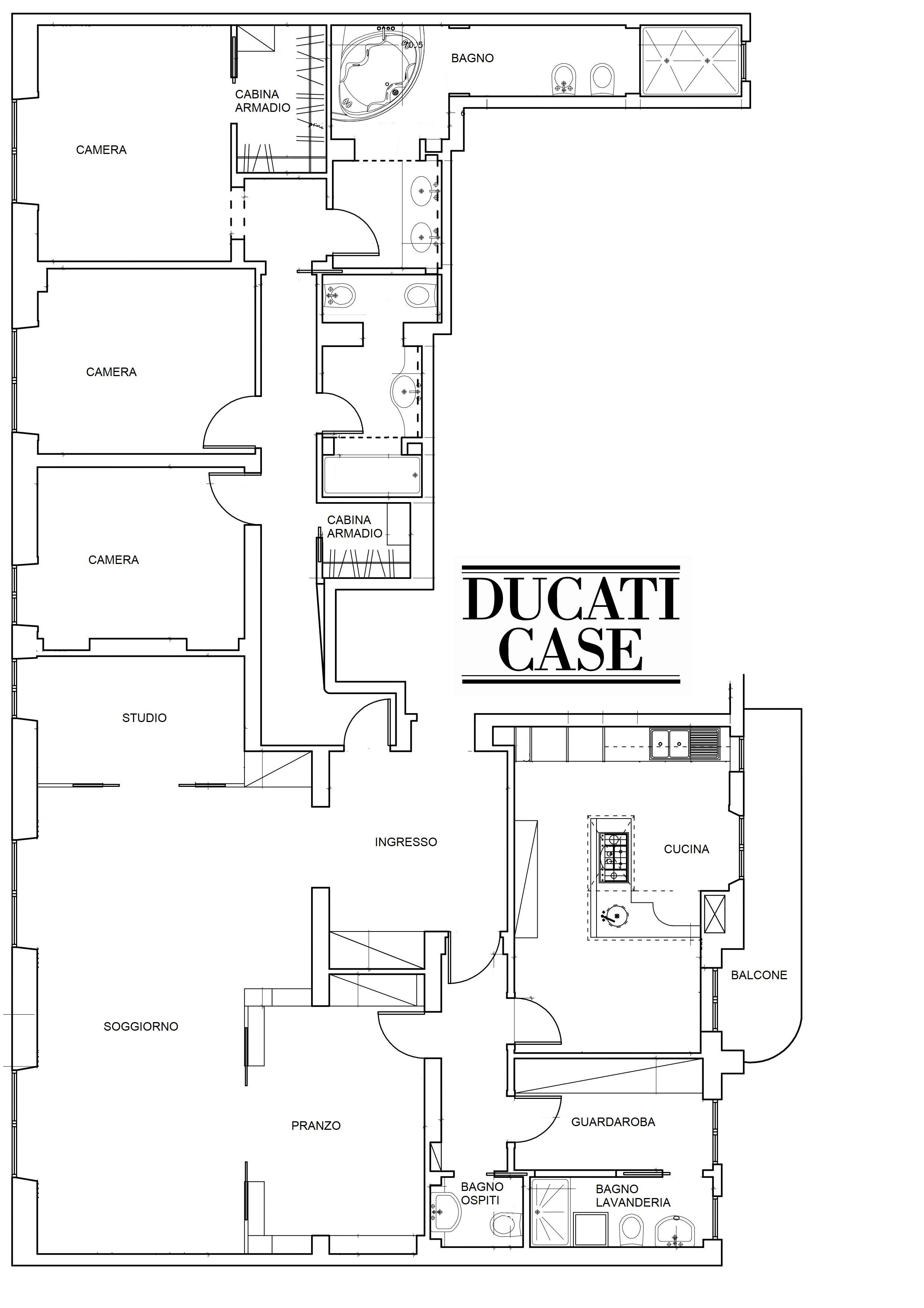 ingresso, soggiorno doppio, pranzo, studio con camino, bagno ospiti, ampia cucina con zona pranzo e balcone, guardaroba e bagno con lavanderia, zona notte con tre camere, due cabine armadio, due bagni.