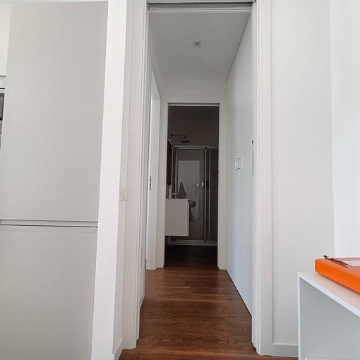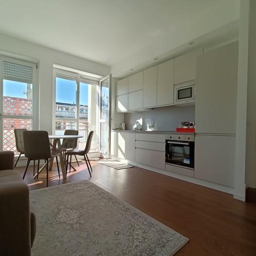 Corso Sempione, Via Fauchè: silenzioso appartamento in affitto posto al sesto piano di circa 40 mq. con ampio balcone e vista sui tetti di Milano, completamente arredato.